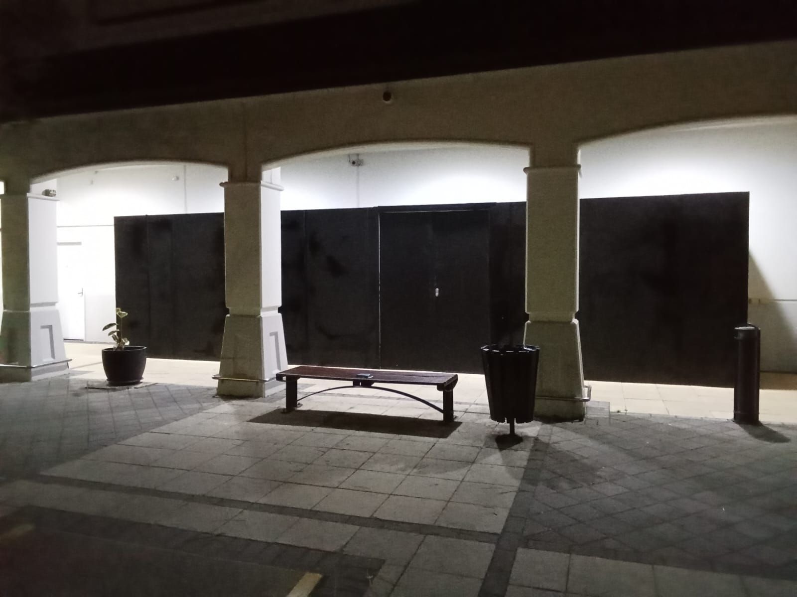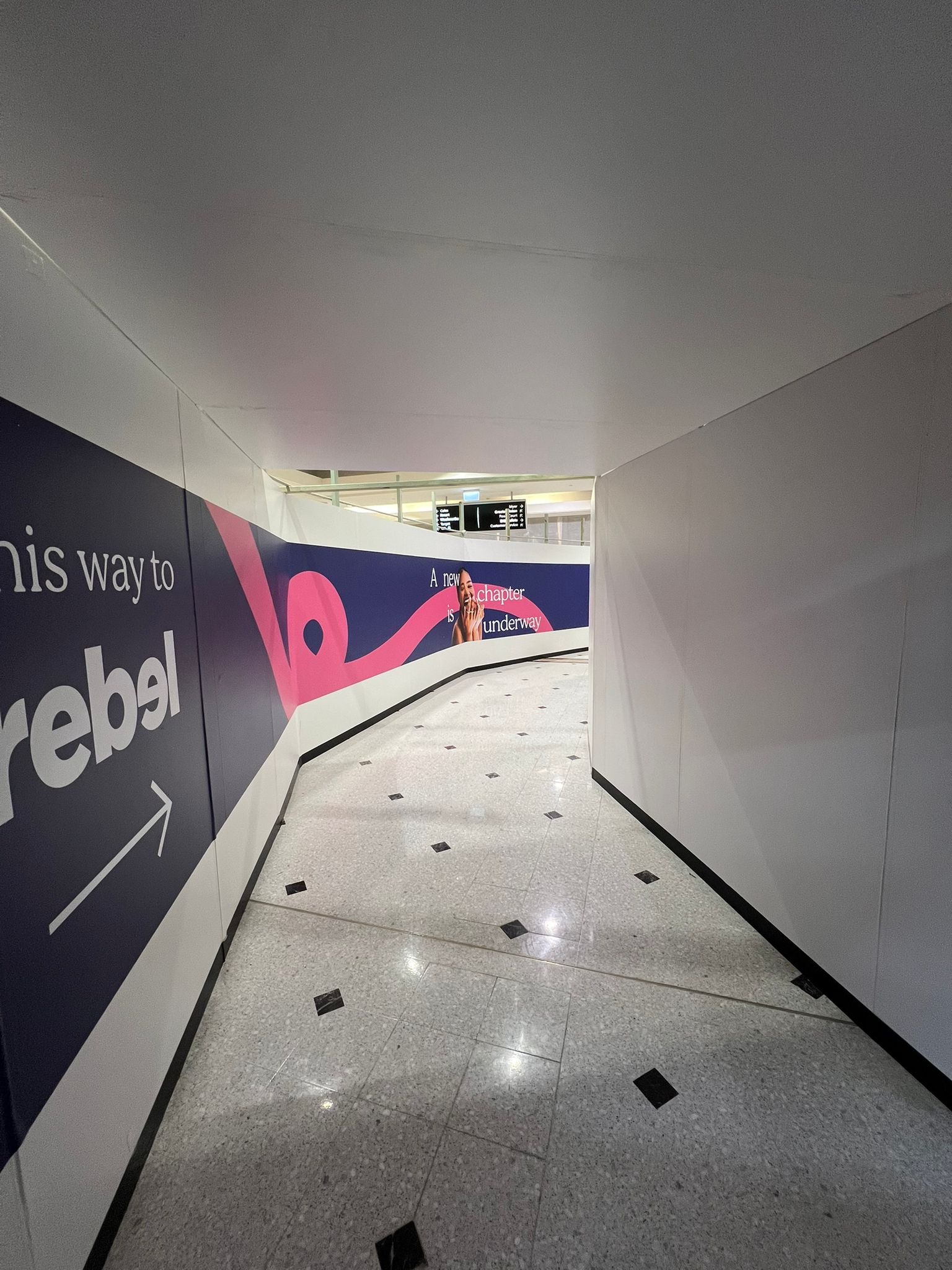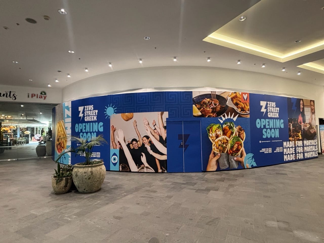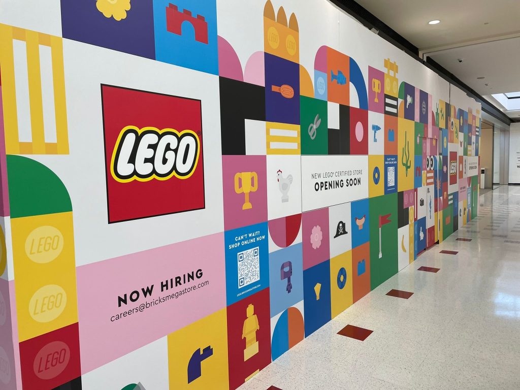 Maintenance projects within shopping centres or commercial buildings frequently use controlled shopfront-style hoarding to isolate work zones while allowing business operations to continue.